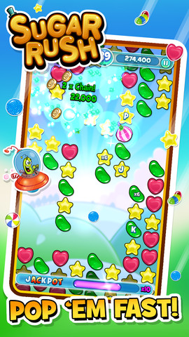 《糖果大战》英文名称为Sugar Rush,是iOS平台上的一款以糖果为题材的益智消除类游戏,玩家在这款游戏中要做的就是通过上下移动的方式去找到匹配的糖果色块,最终将它们全部消除。