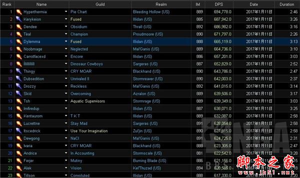 由于目前魔兽世界7.2模拟DPS测试数据排行暂未公开,